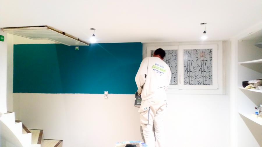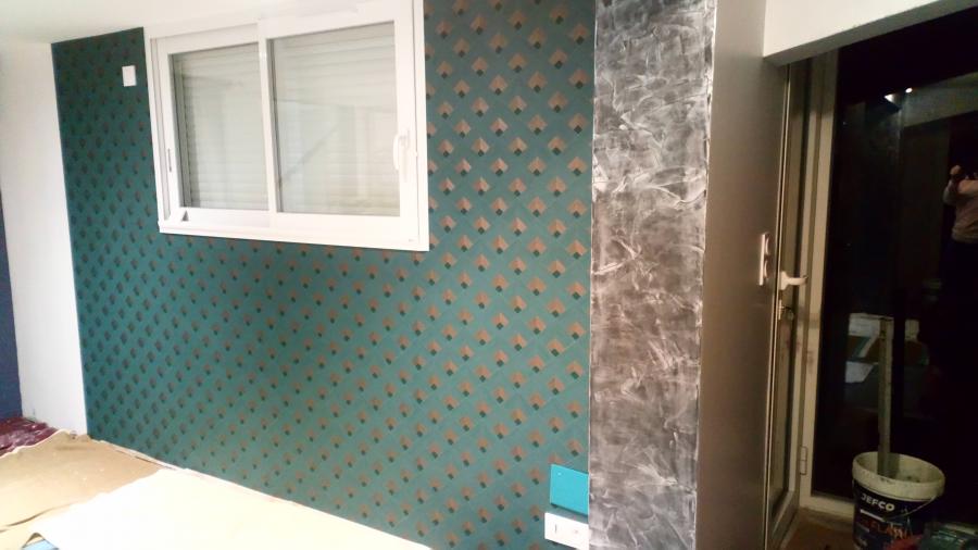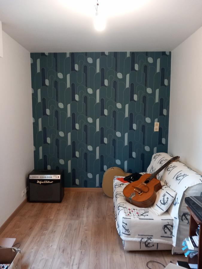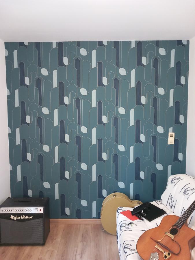 Pose d'un papier peint sur mesure de chez SOLMURS
